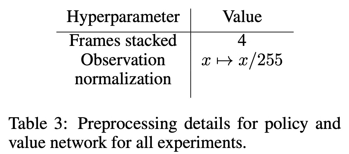 - 실험을 위한 환경의 preprocessing 방법: Table 2