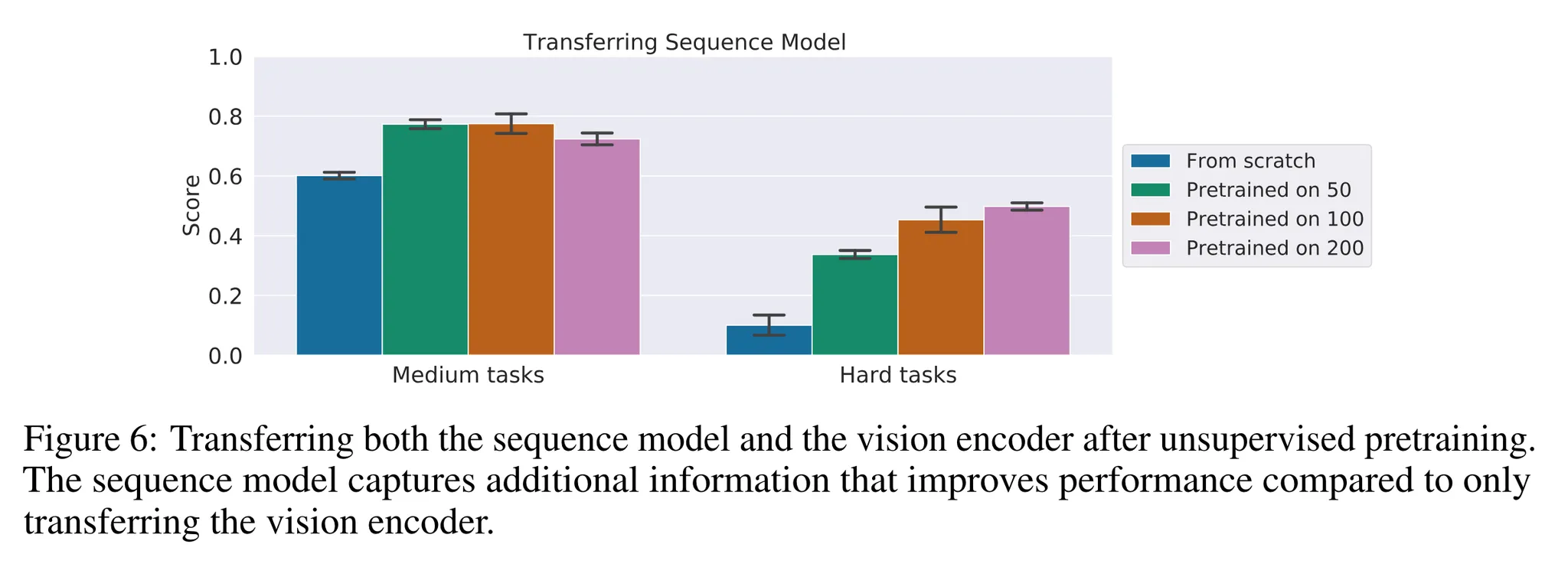 - 또한 시퀀스 모델을 전이하는 것은 비전 인코더만을 전이하는 것에 비해 거의 두배의 점수를 달성