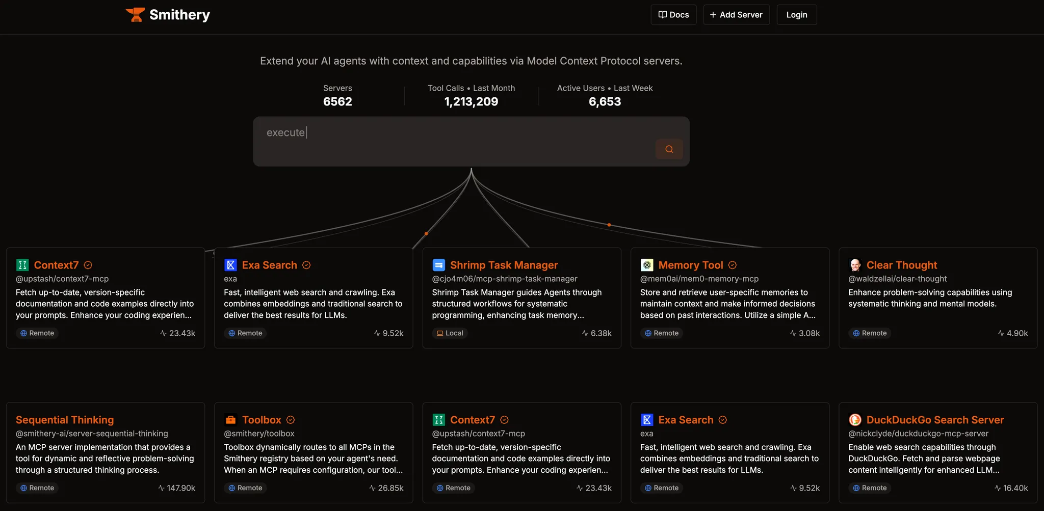 - Smithery 웹 사이트에는 아래와 같이 많은 MCP 서버들이 있는 것을 볼 수 있습니다!! 🫢