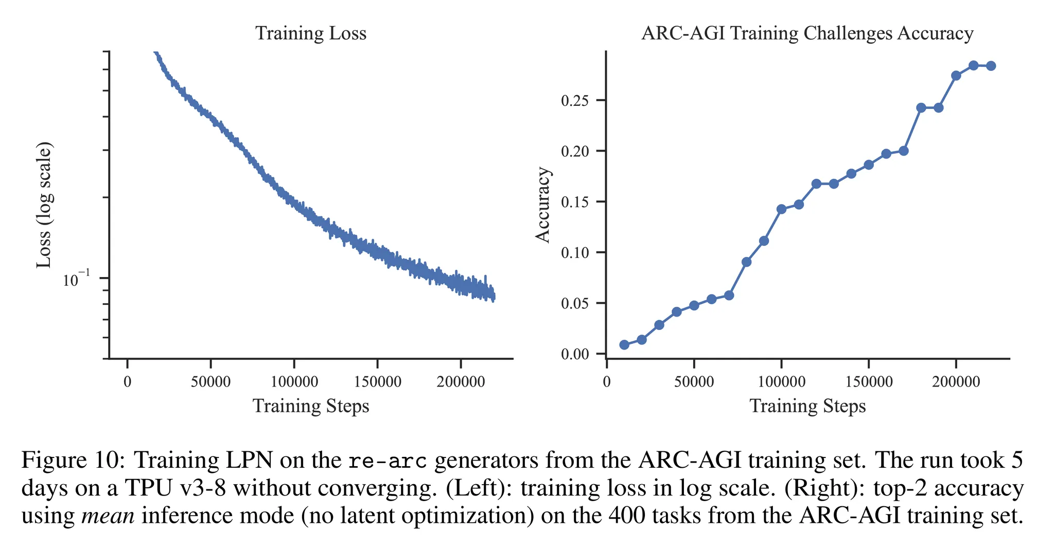 - ARC-AGI 문제에서 수렴할때까지 충분히 학습되지 않음