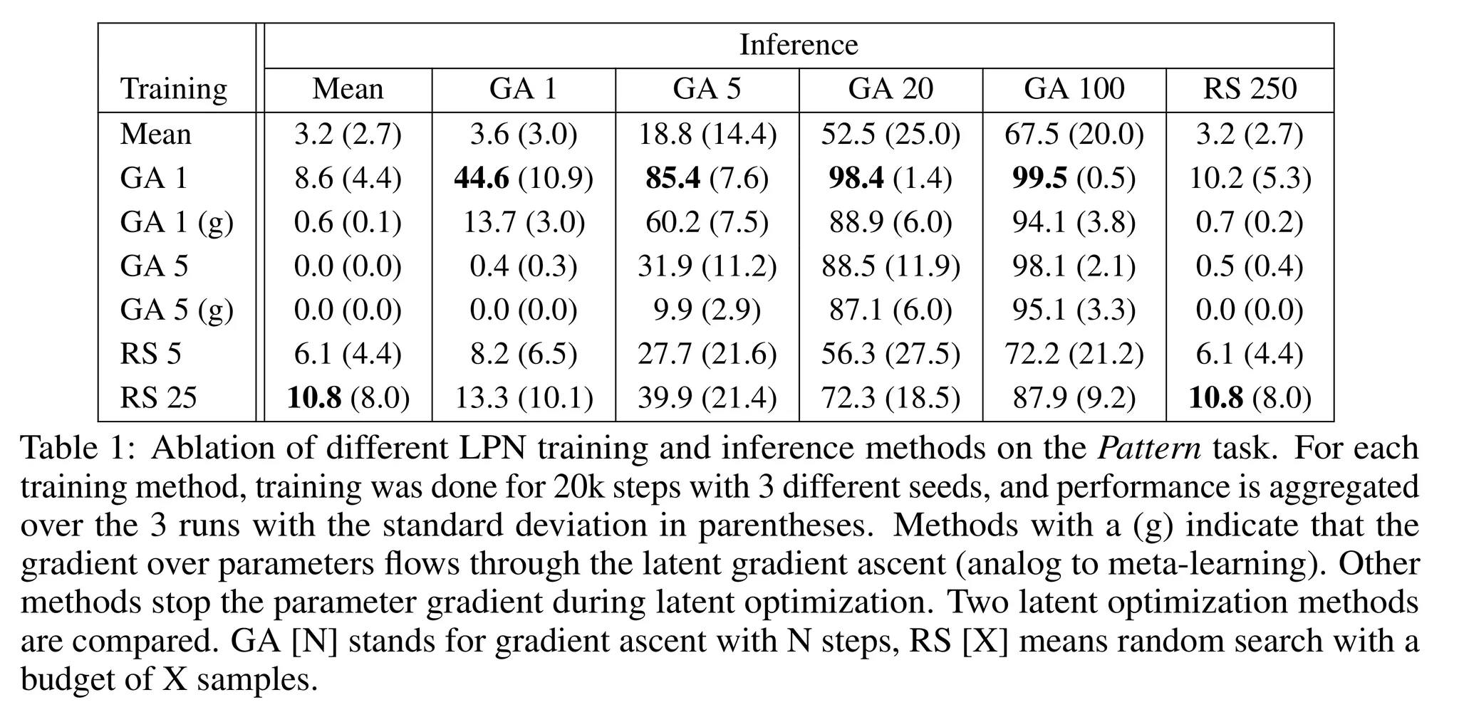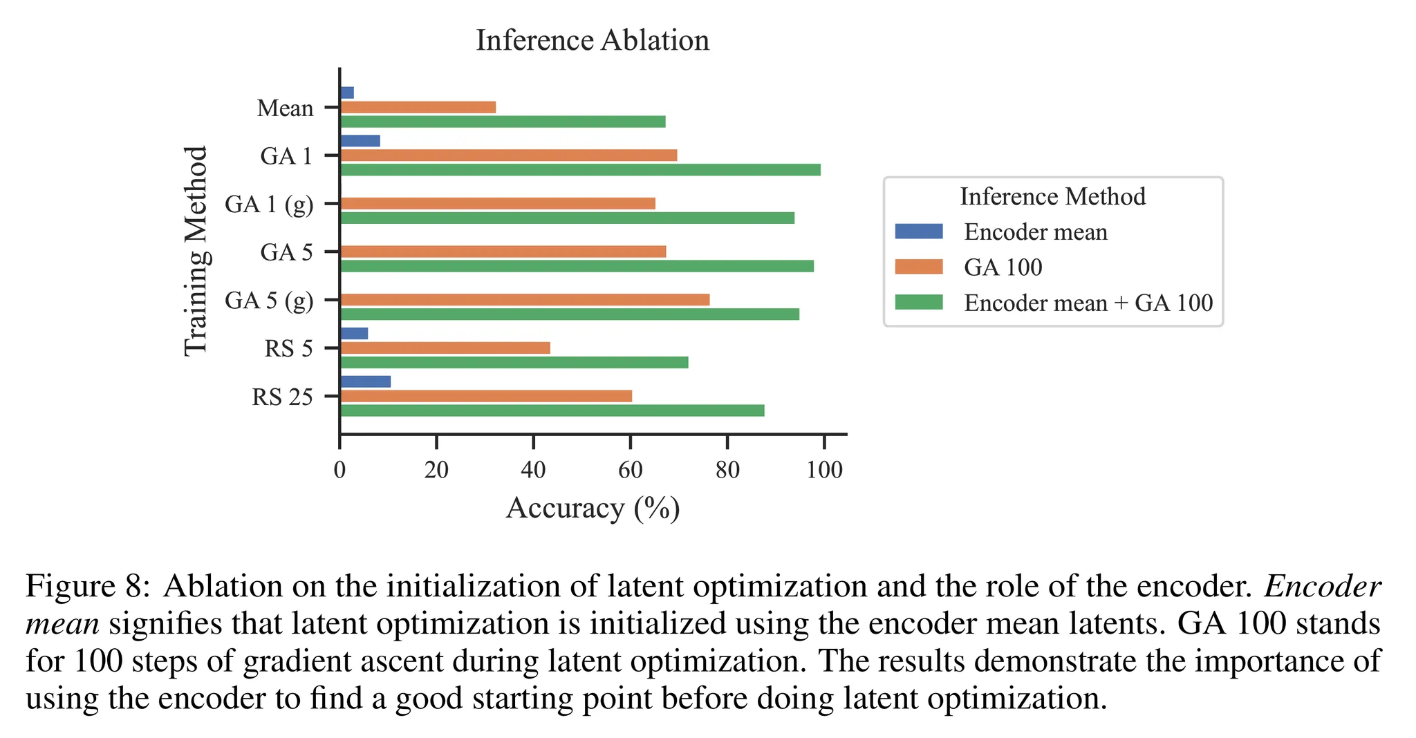 - Mean latent로 학습한 경우 100 스텝의 gradient ascent 추론을 했을 때 67.5%의 정확도를 달성했지만 1 gradient step으로 학습한 경우 99.5%의 정확도를 달성