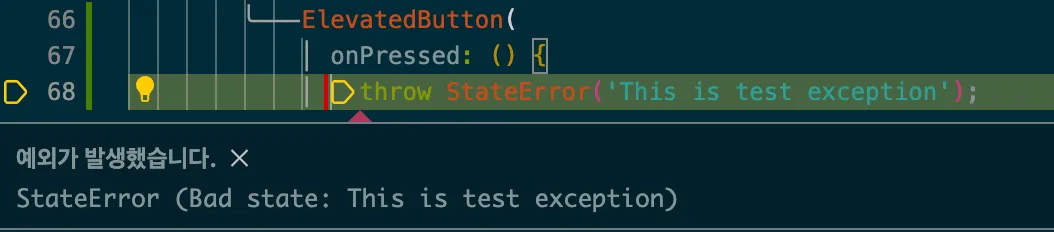 - 위의 버튼은 단순히 StateError를 일으키는 버튼입니다.