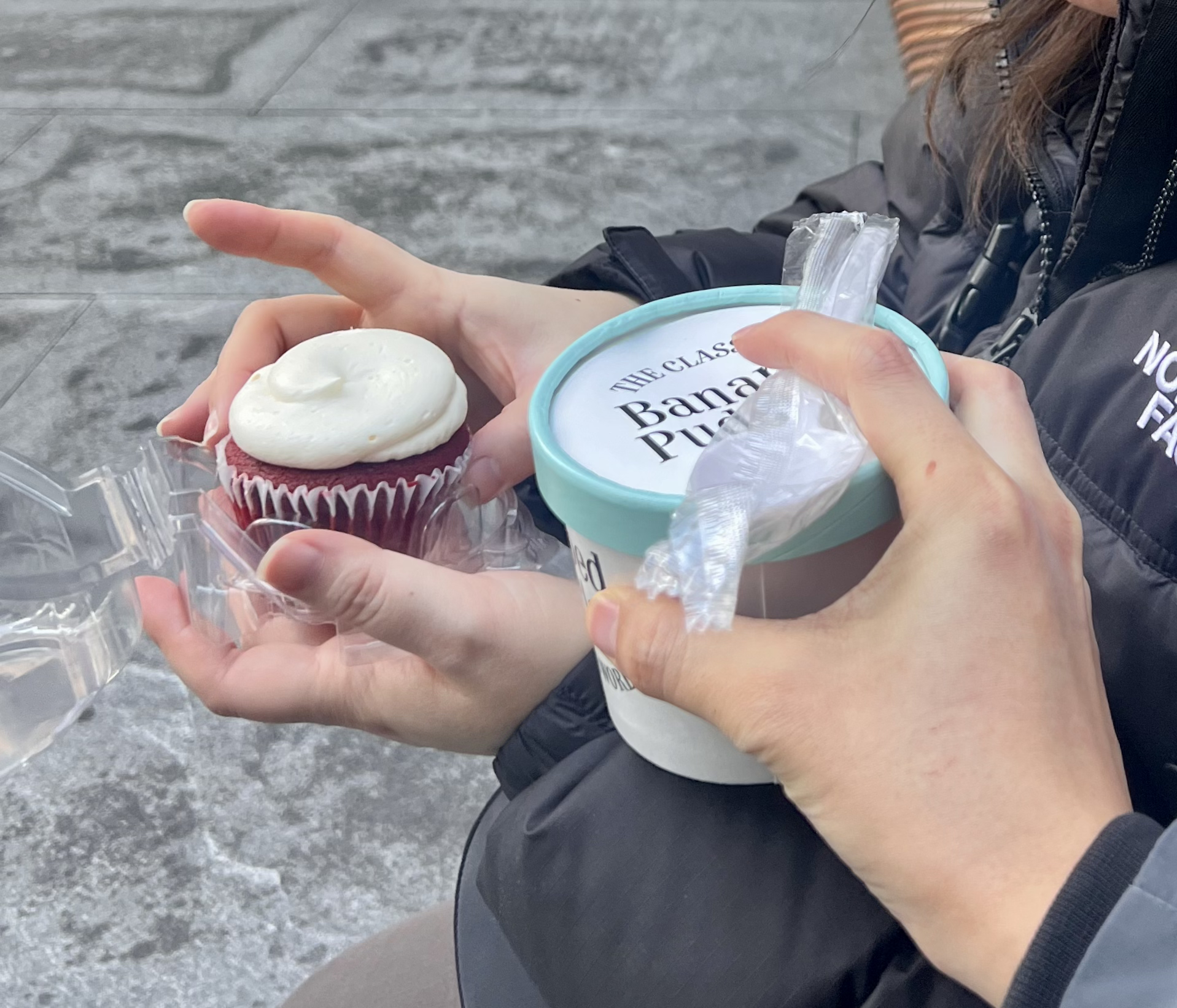 저희는 여기서 바나나푸딩 중간 사이즈랑 레드벨벳 컵 케이크를 샀습니다!