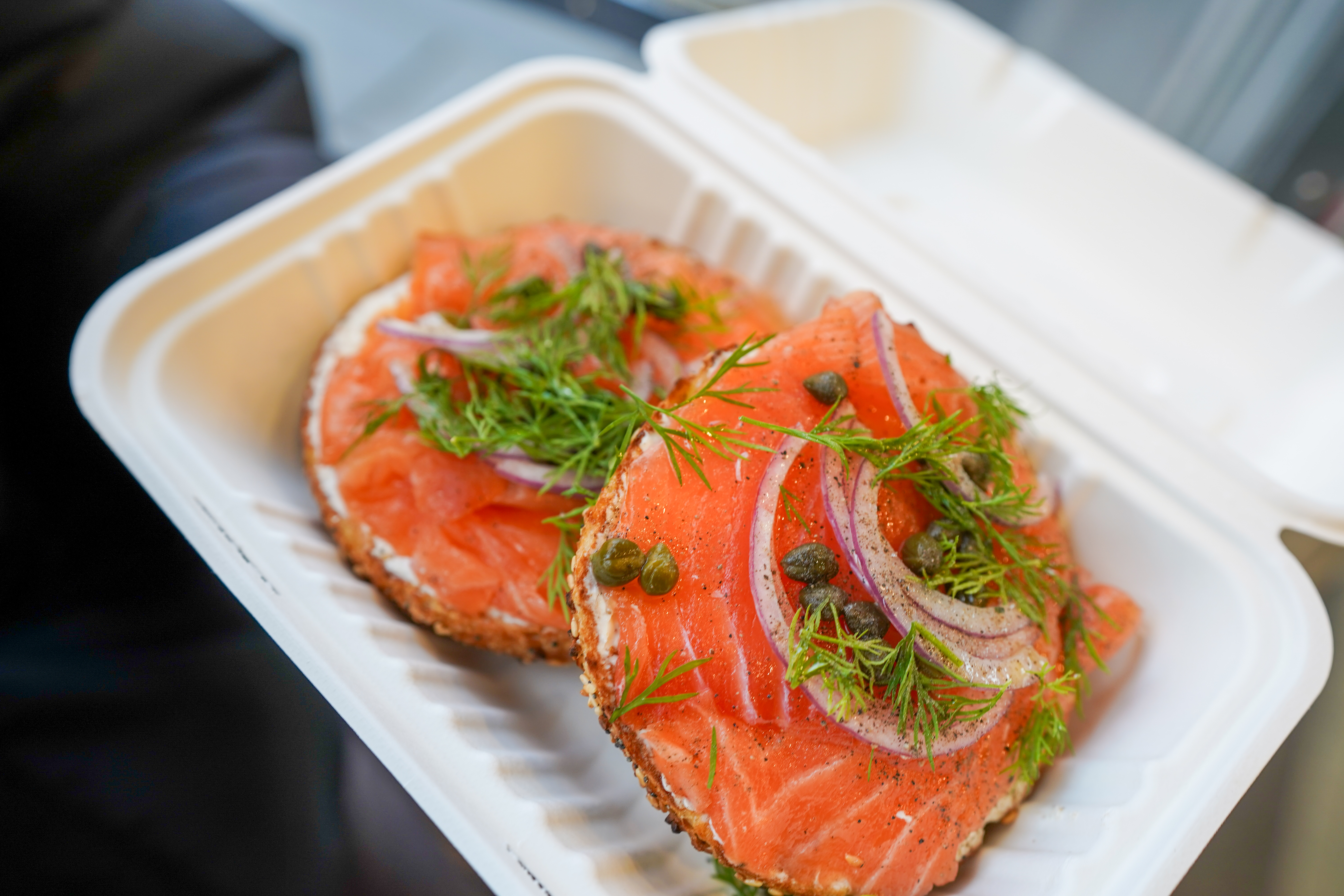 - Everything 베이글 + Bagel with smoked salmon, cream cheese, caper, red onion, dill