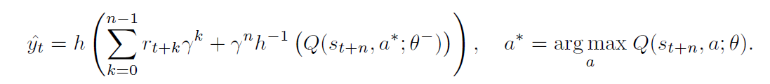 - reward에 대해선 특별히 clip을 적용하지 않았지만, value function을 rescaling 하는 방식을 사용했습니다. (아래 수식을 적용했습니다.)