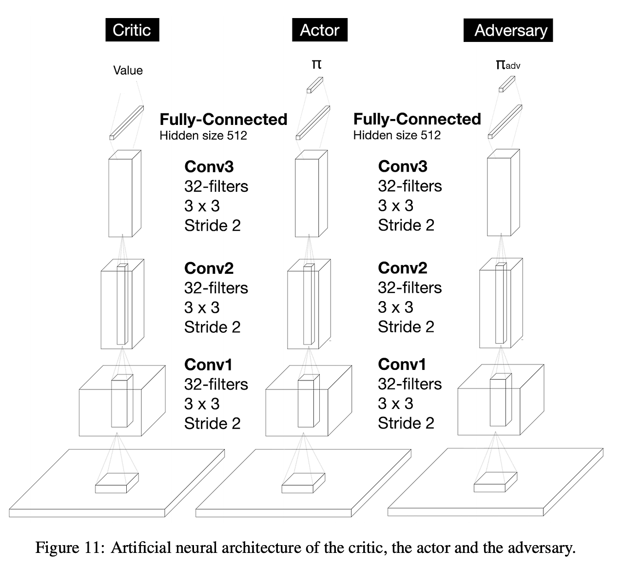 - Actor, Critic, Adversary는 DQN과 동일한 conv 구조 사용